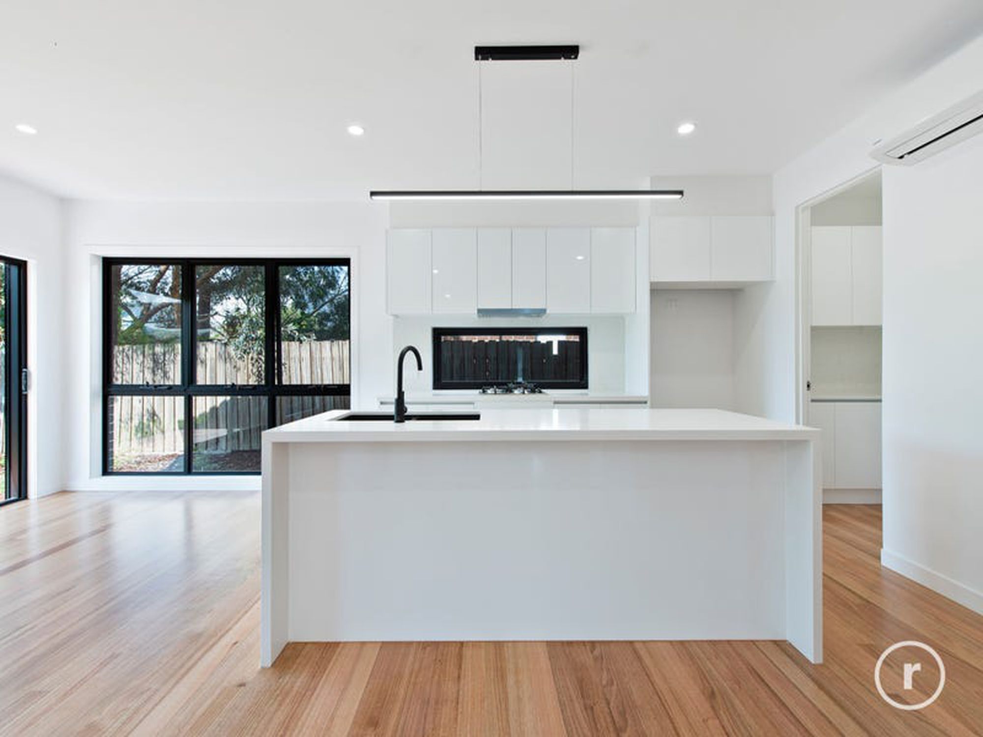 A palatial kitchen & butlers pantry will undoubtedly satisfy all culinary enthusiasts with only the finest appliances as well as exceptional fixtures & fittings, including island bench with waterfall 40 mm Caesar stone bench-tops, double under-mount sink, architectural lighting & generous storage facilities. The kitchen extends beyond to a magnificent open living & dining area that is complimented further by a decked landscaped area.