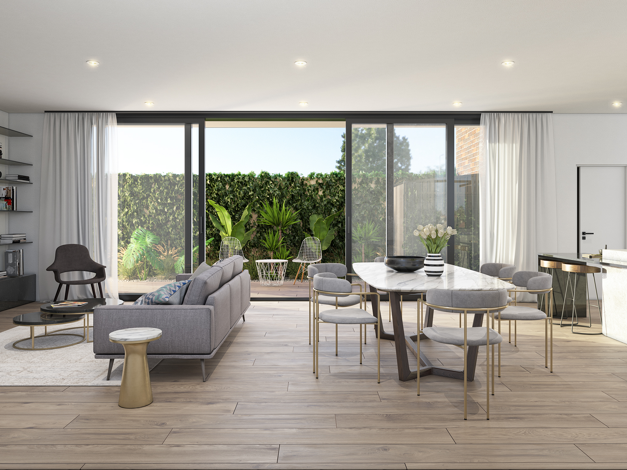 This light-filled townhome features soaring ceilings with open living & dining further complemented by a generous decking area & tranquil courtyard space.
