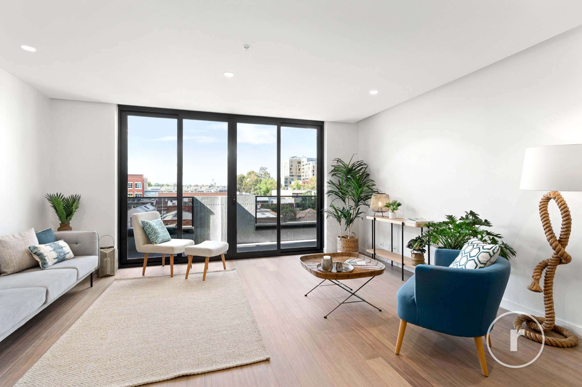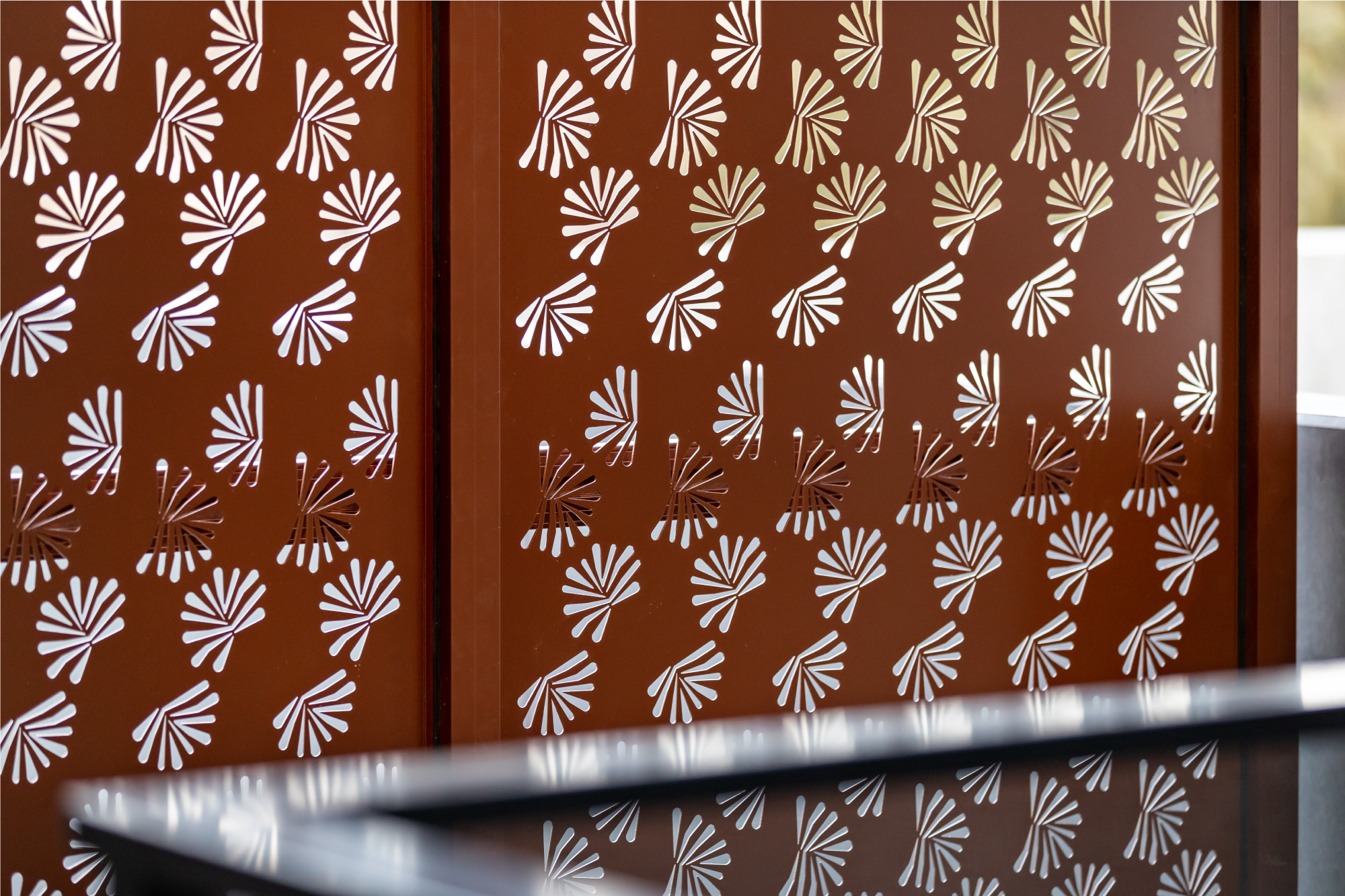 Open corridors & common areas clad with mosaic sandstone tiles & ornate landscaped surrounds create for an entry sequence into Residence 307 that is truly sublime.