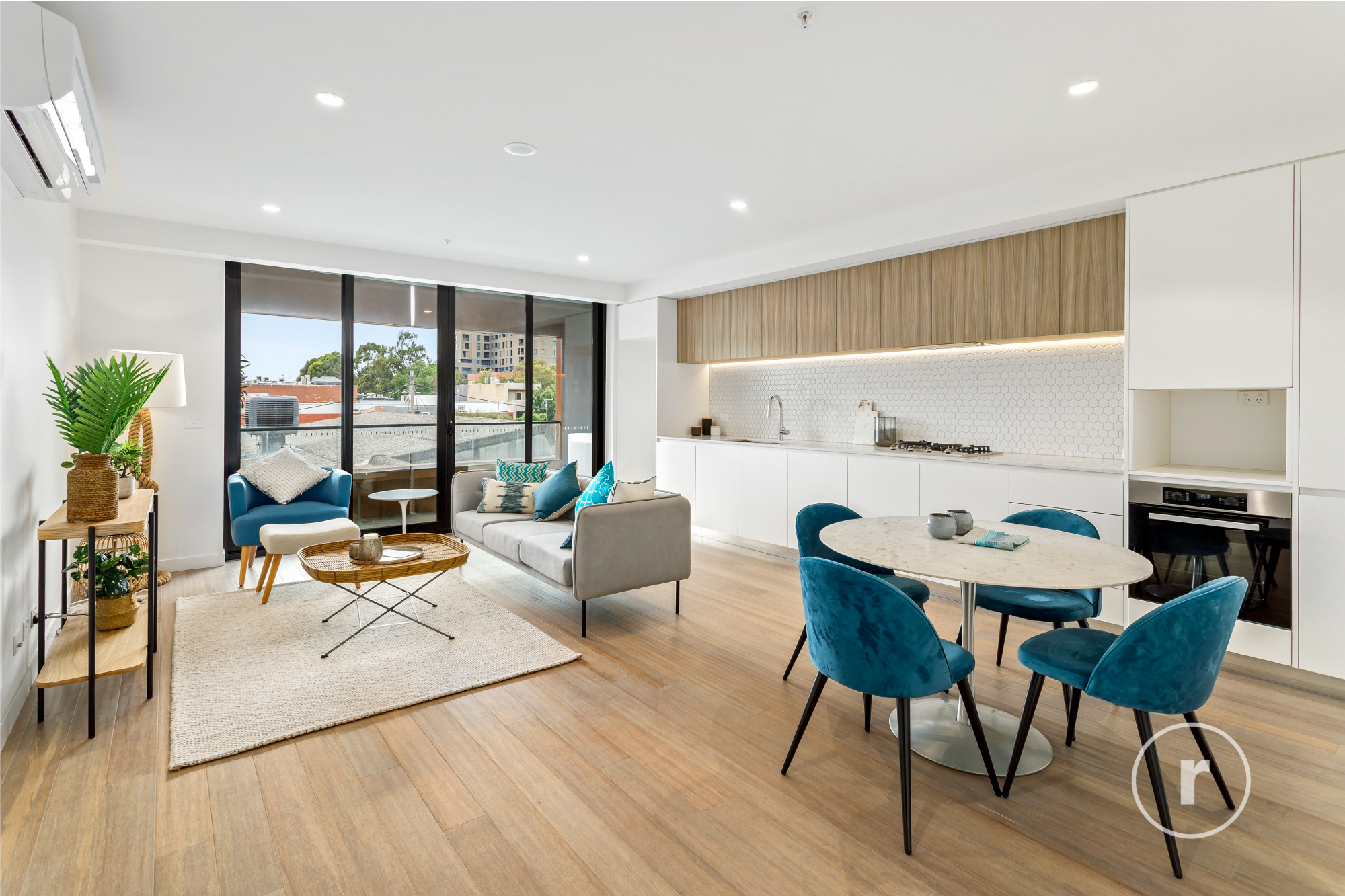Open corridors & common areas clad with mosaic sandstone paving complimented with landscaped surrounds create for an entry sequence into Residence 209 that is truly sublime.